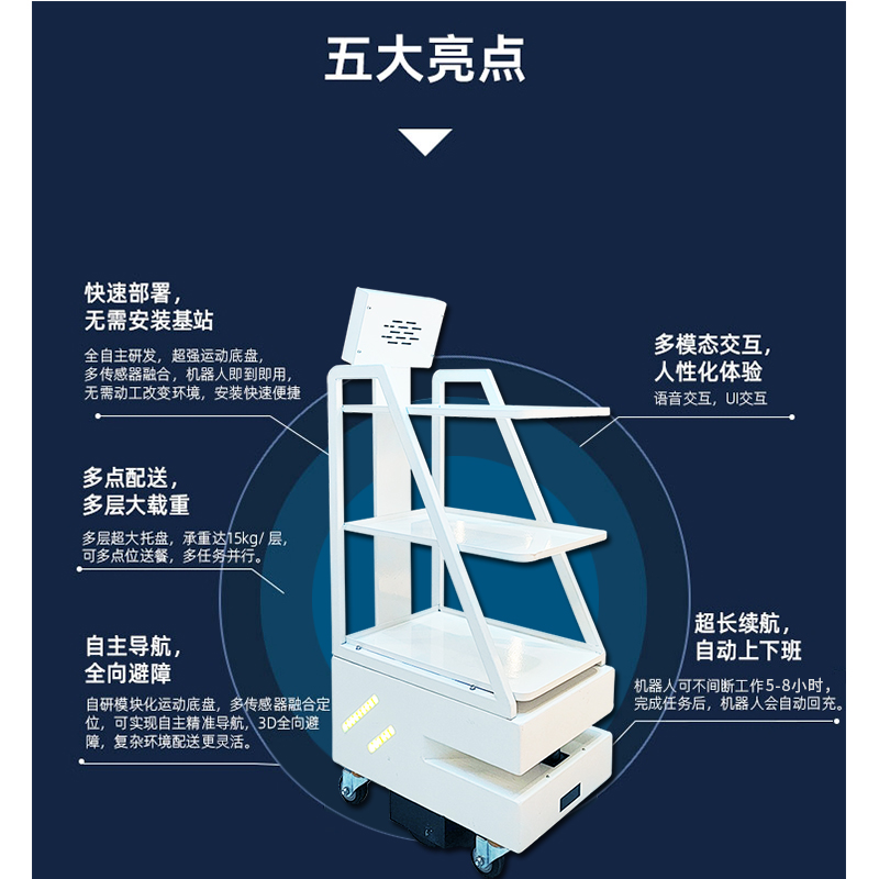 “為了解決‘服務(wù)慢’的問題,我們把智能送餐機(jī)器人進(jìn)行‘精*細(xì)定量’,研發(fā)出的闖王智能送餐機(jī)器人有磁導(dǎo)航和激光導(dǎo)航兩種,對于各種餐飲店需求不同,配置了不同的使用功能,做到每一項(xiàng)細(xì)節(jié)智能服務(wù)都是按照客戶實(shí)際需求研發(fā)設(shè)計(jì)?!币继栔悄芩筒蜋C(jī)器人研發(fā)部部長表示。