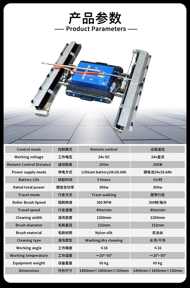 闖王CW-PV-LD雙頭遙控履帶式光伏板清洗機(jī)