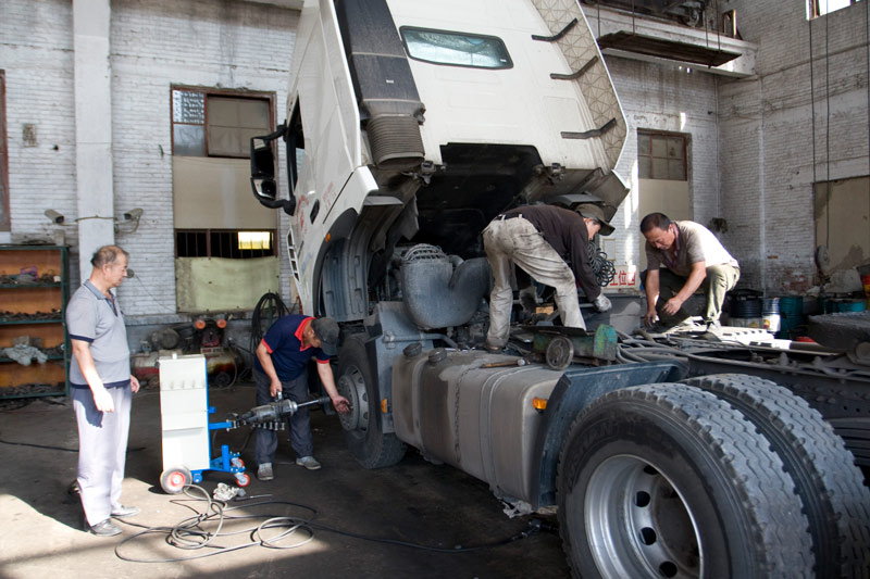 修理廠擁有有初、中、高級職稱技術人員40名,技術負責人、質檢、送檢、機修、電工、輪胎、電氣焊、鈑金、噴漆等各工種設置齊全,下設發動機維修、車輛二級維護、事故車維修、轎車修理四個作業班組,主要開展車輛二級維護、發動機大修、車輛零修、事故車輛大修、大梁校正、車輛中故救援、轎車維修保養等服務業務,年維修維護各類客貨車輛近萬車次,年大修能力500輛次。